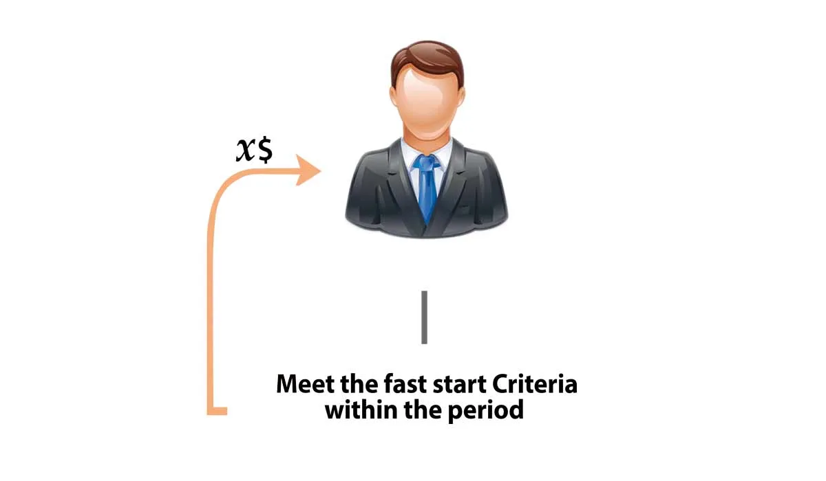 A fast start bonus is paid for a specific amount of product a new distributor sells in the first few months. In other words the Fast start Bonuses will be given to the distributors when they have achieved the target within a particular period.